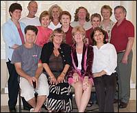 ACAL Committee 2000-2001: L to r: Michael Chalk (Vic rep); Jim Thompson (WA rep); Erica Daymond (Secretary); Geraldine Castleton (President); Suzanne Bozorth-Baines (Treasurer); Jean Searle Qld rep); Rosa McKenna (Immediate Past President); Christine O’Callaghan (ACT rep); Tess Were (SA rep); Judy Harwood (Vice President); Liz Cooper (Tas rep). From Literacy Link