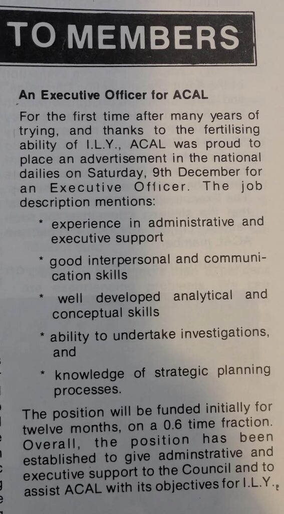 ACAL has been served by a succession of generous people – generous with their time and experience often adding the ACAL presidency to already demanding professional and personal roles.